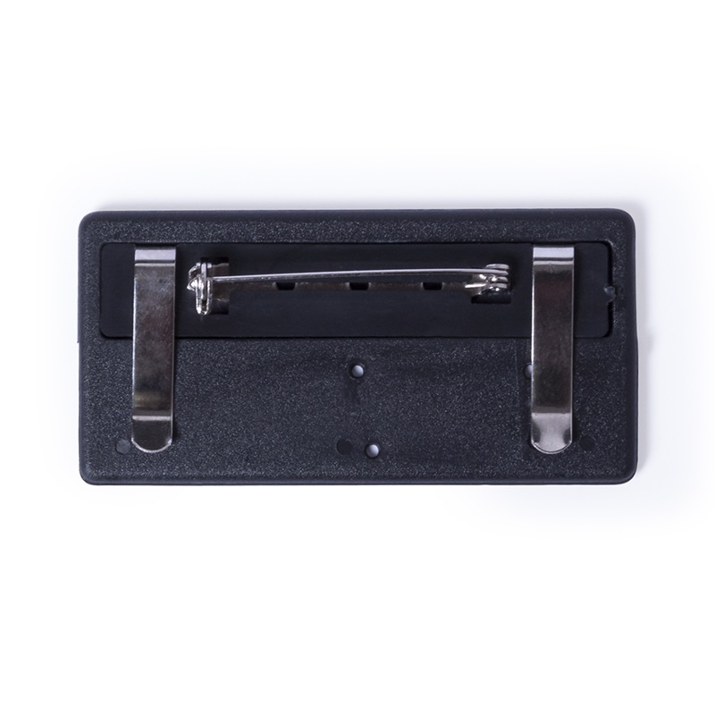 Are inclusa o hartie ce se poate inlocui si pe care se imprima numele si functia persoanei/angajatului/clientului/vizitatorului