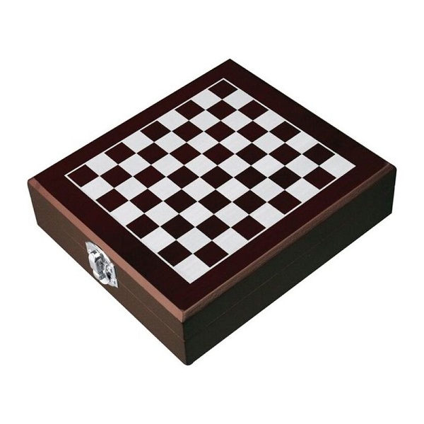 Livrate intr-o cutie din lemn imprimata pe fata cu o tabla de sah