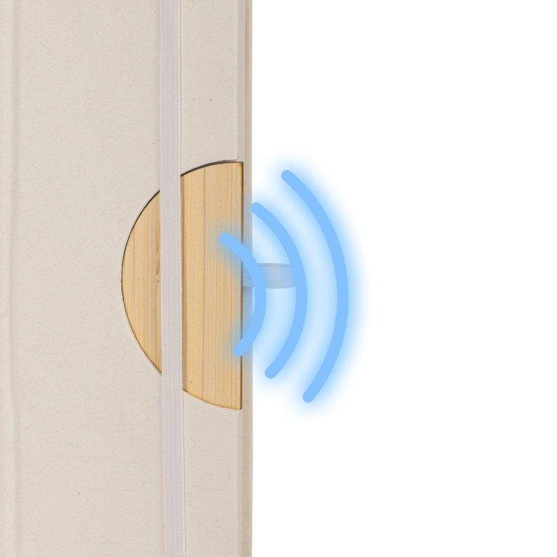 Insertia din bambus pentru notes este doar cu eticheta NFC – Near Field Communication – care permite conectarea acestuia la smartphone-uri, tablete si orice alt dispozitiv NFC