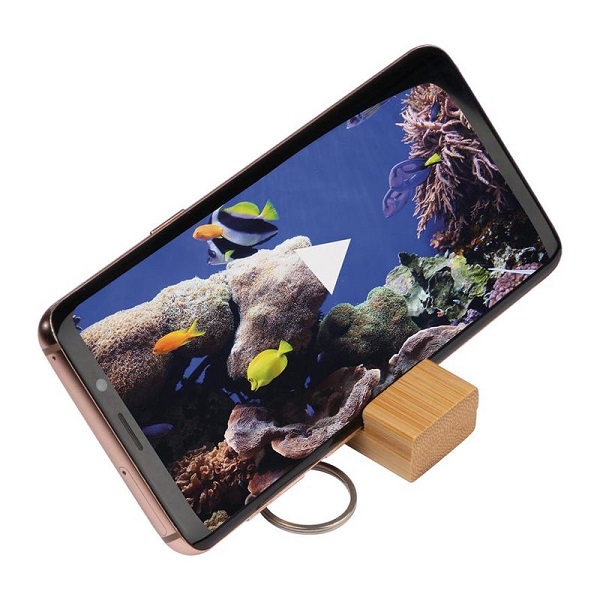 Dimensiune breloc cu suport de telefon din bambus: 6 x 2,5 x 1,5 cm