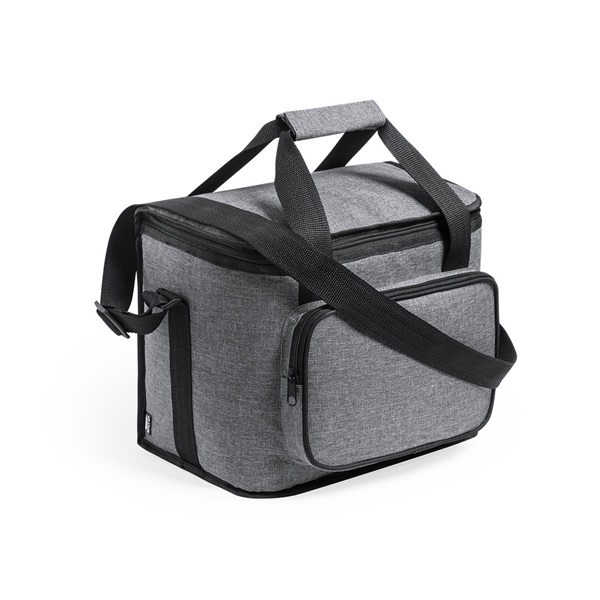 Geanta frigorifica pentru activitati de tipul take away, in trend ecologic fabricata dintr-un amestec rezistent, de plastic reciclat, poliester si PEVA