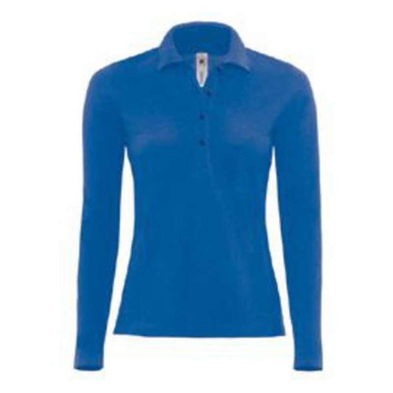Tricou polo cu maneca lunga de dama B&C Safran Pure fabricat 100% din bumbac Ring Spun.Bluza are inchidere cu 4 nasturi de aceeasi culoare ca a tricoului.Tricoul are banda de intarire pe spate, cusaturi laterale si cusatura dubla la baza produsului.